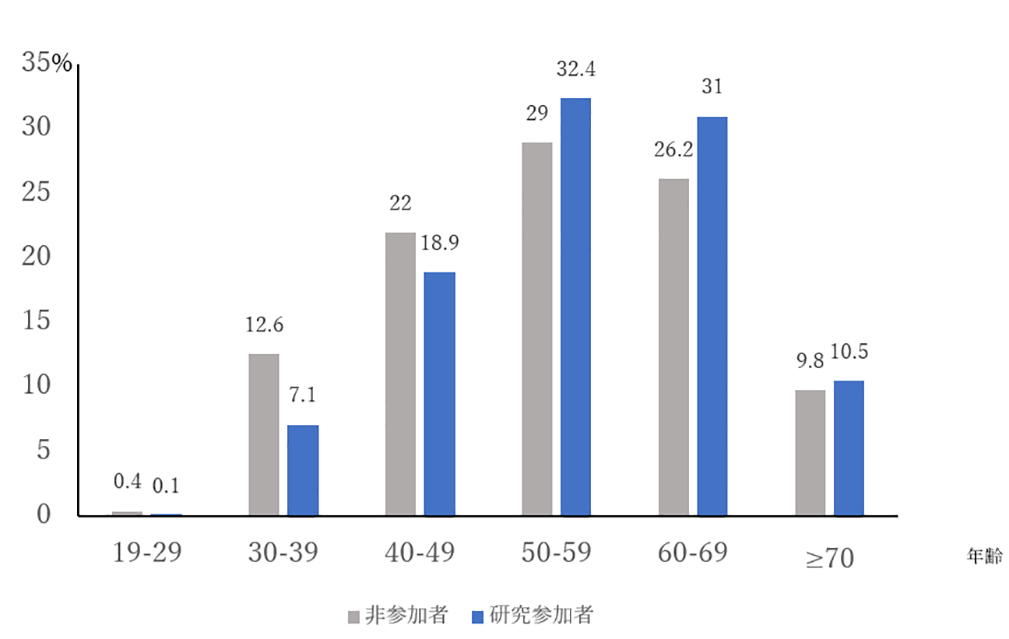 3研究参加者と不参加者の年代別割合 (2022年時点)
