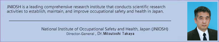 The National Institute of Occupational Safety and Health, Japan (JNIOSH) is one of the leading research institutes that conducts scientific research activities to establish, maintain, and improve occupational safety and health (OSH) in a comprehensive way. For over 80 years JNIOSH has consistently supported in scientific aspects the administrative measures protecting workers' safety and health. Many outcomes obtained from these research activities have contributed to decrease the number of workers who were damaged in health, injured, or killed by occupational accidents and diseases. In other words, the outcomes obtained from the research activities are valuable assets of the nation. All the staff of the institute are proud of this history inherited from seniors in the institute.