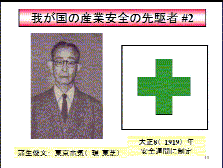 二高,東京帝国大学で学んだのち東京電気(現:東芝)において安全活動を開始します。現在毎年開催されている安全週間運動が最初に開催されたときにシンボルマーク・緑十字を定めるなど,産業安全活動を社会運動へと発展させた中心人物です。大正,昭和戦前,戦後を通じて産業安全活動一筋で生きた人です。